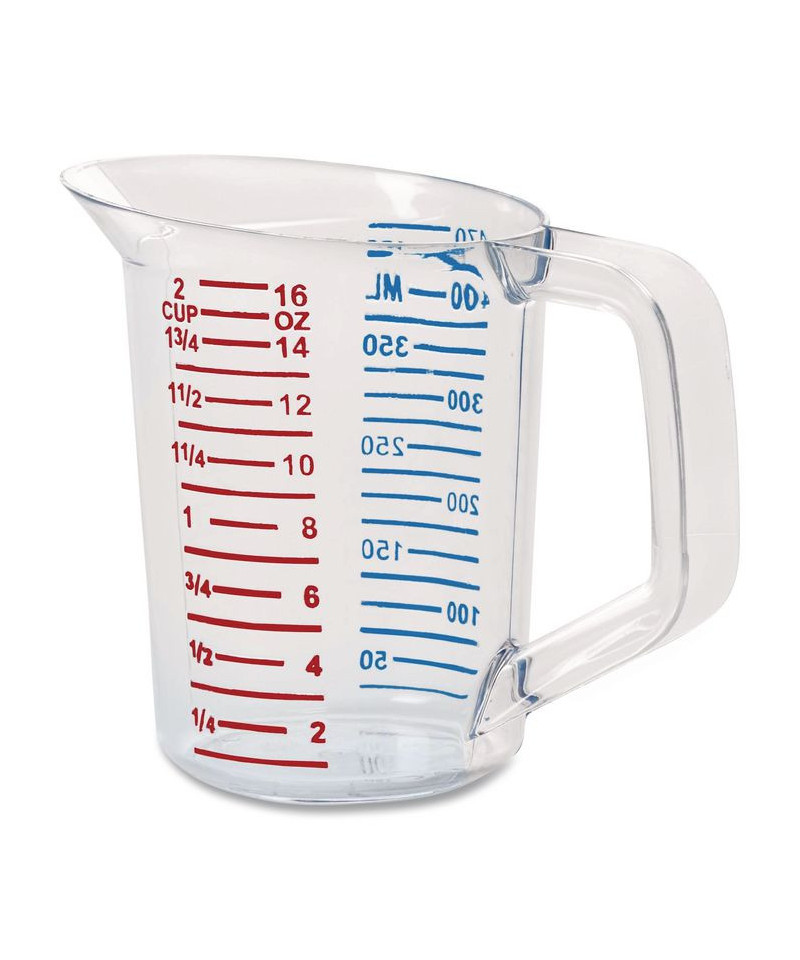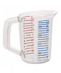 Measuring cup is constructed of break-resistant and durable crystal-clear material. Rubbermaid measuring cups feature large, easy-to-read measurements in high-contrast red or blue. Safe for use with temperatures ranging from -40-degree F and 212-degree F. NSF certified and commercial dishwasher safe.