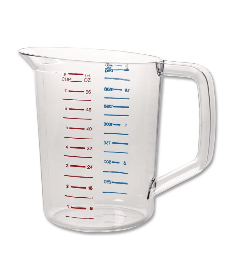 Measuring cup is constructed of break-resistant and durable crystal-clear material. Rubbermaid measuring cups feature large, easy-to-read measurements in high-contrast red or blue. Safe for use with temperatures ranging from -40-degree F and 212-degree F. NSF certified and commercial dishwasher safe.