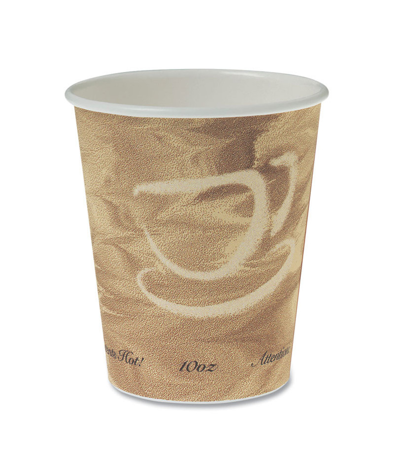 Single Sided Poly Paper Hot Cups, 10 oz, Mistique Design, 50/Bag, 20 Bags/Carton