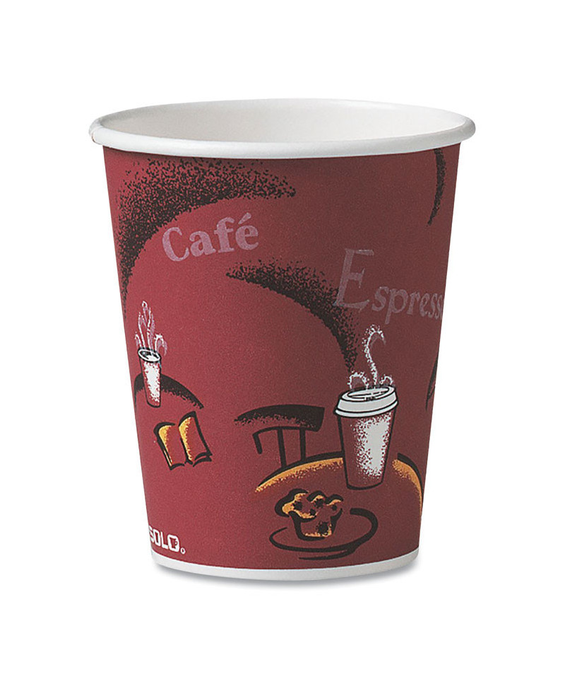 Enjoy hot drinks the hassle-free and sustainable way with these 12 oz paper hot cups. Whether you're serving freshly brewed coffee, herbal teas or creamy hot chocolate, the Bistro® print will enhance your customers' experience. The rolled rim adds extra strength for a comfortable sip every time. Protect against leaks thanks to the moisture-resistant lining, making them a perfect to-go option for coffee shops, restaurants or breakrooms. Combining durability and reliability, these cups are crafted from plant-based renewable resources, showcasing your commitment to sustainability. They pair perfectly with a variety of lid styles for a secure, snap-tight fit. Their stackable design enhances operational efficiency, while the printed sleeves simplify product identification and reordering. Each sleeve features a scannable bar code for precise inventory management. Perfect Pak® cases are designed with a condensed pack size to help operators organize limited storage space. They offer flexibility for small and medium sized businesses. Whether you're managing an office or organizing an event, these Solo® paper hot cups are sure to be a hit with you and your customers. These cups may be recycled if you have access to a recycler that accepts paper cups. Such facilities may not exist in your area. They are made with at least 88% renewable resources. We source fibers certified under the SFI® chain of custody. They are made in the USA with U.S. and global materials.