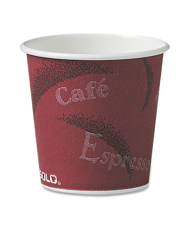 Single-Sided Poly Paper Hot Cups, 4 oz, Bistro Design, 50/Pack, 20 Packs/Carton