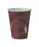 Attractive coffee-themed cup is ideal for hot beverages. Brings upscale appearance to any food service.