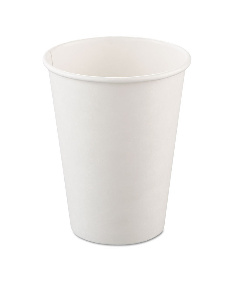 Single-Sided Poly Paper Hot Cups, 12 oz, White, 50/Bag, 20 Bags/Carton