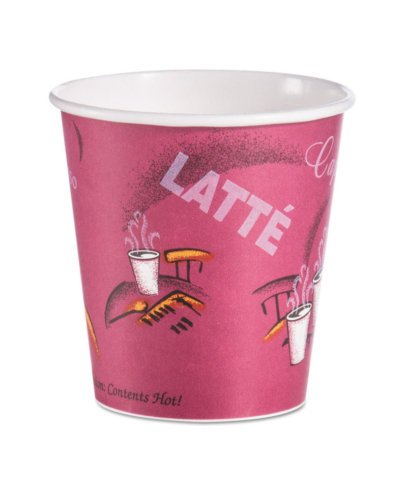 Paper Hot Drink Cups in Bistro Design, 3.54" Diameter x 3.61" h, 10 oz, Maroon, 1,000/Carton