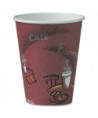 Attractive coffee-themed cup is ideal for hot beverages. Brings upscale appearance to any food service.