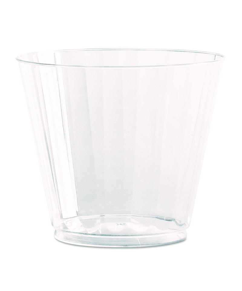 These clear plastic tumblers feature an elegant fluted design. Rigid plastic offers the strength and beauty of glassware. Provide a tasteful upscale appearance to any surroundings. They are disposable and offer all of the appeal of glass without the clean-up.