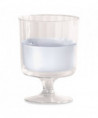 This stemware is elegantly fluted to mimic the appearance of fine crystal. These glasses offer all the beauty of crystal without the delicate breakability. They provide an impressive, upscale appearance to any setting. Unlike crystal, they are disposable, with no mess to clean up.