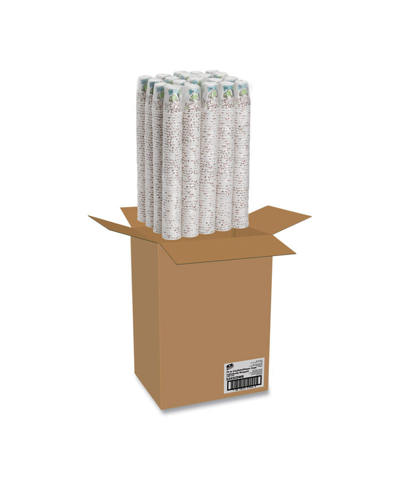 PerfecTouch Paper Hot Cups, 12 oz, Coffee Haze Design, Individually Wrapped, 1,000/Carton