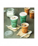 Superior strength. Color-coded for easy size recognition when pulling from inventory. Lined with Ingeo™, a 100% annually renewable material made from plants. Polylactic acid (PLA) coated paper. While PLA is used for cold applications, when the PLA film is applied to paper such as our hot cups and soup cups, the PLA film takes on the properties of the paper and therefore does not melt or deform.