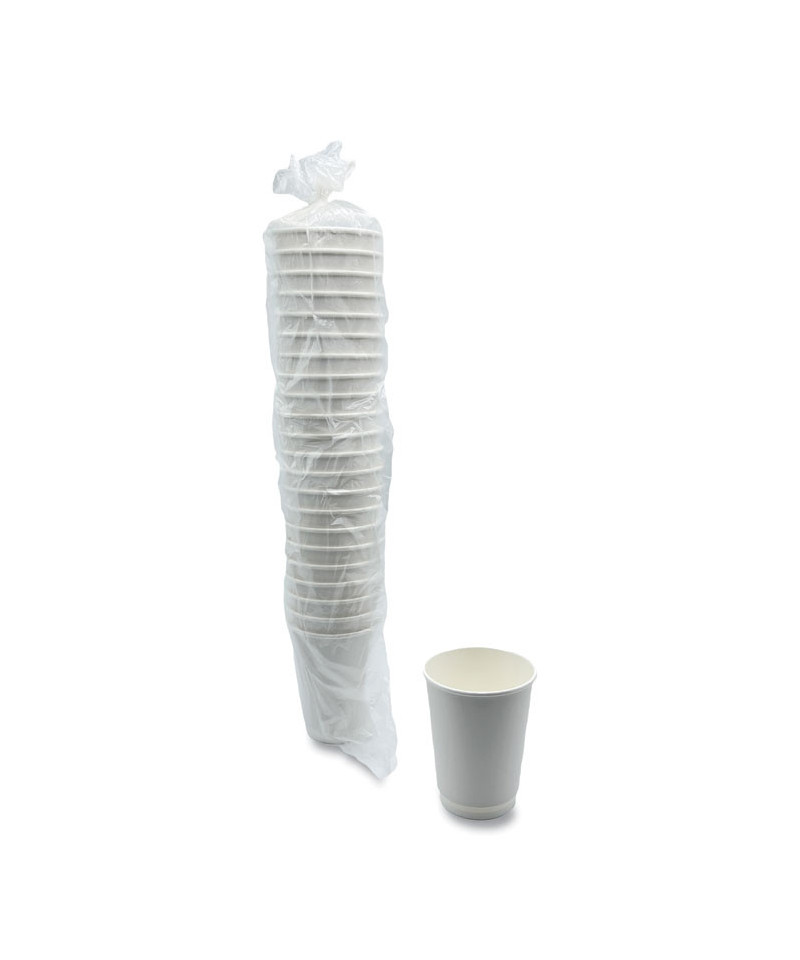 Paper Hot Cups, Double-Walled, 12 oz, White, 25/Pack