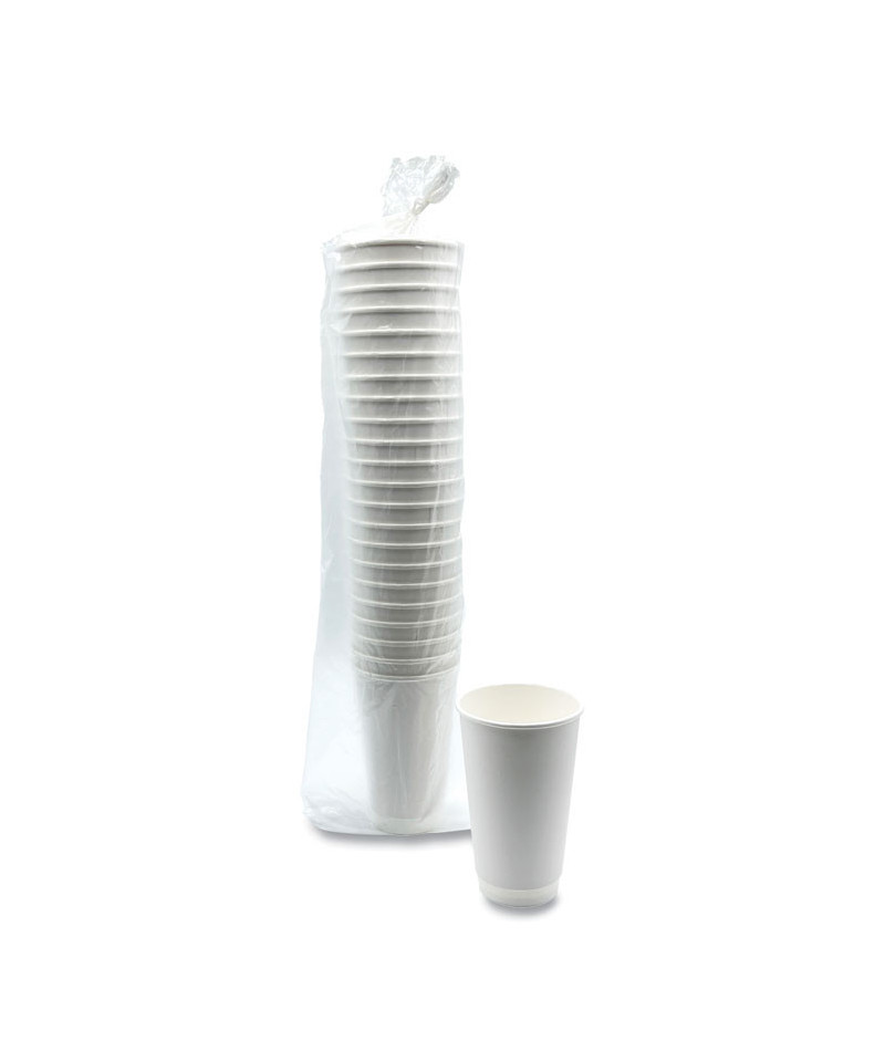 Paper Hot Cups, Double-Walled, 16 oz, White, 25/Pack