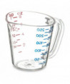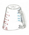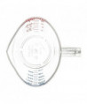 This measuring cup offers easy measuring of wet ingredients with US and metric measurements. The oval shape facilitates pouring from non-spouted side. Each cup nests for storage and made of durable dishwasher safe polycarbonate that is resistant to staining, breaking and chipping. An overhead view of the inside measuring lines allows for a faster, more accurate measurement.