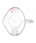 This measuring cup offers easy measuring of wet ingredients with US and metric measurements. The oval shape facilitates pouring from non-spouted side.