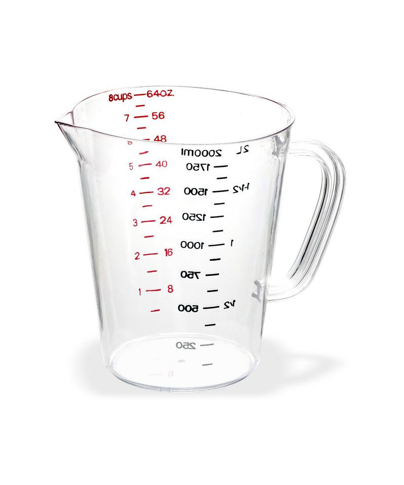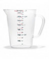 This measuring cup offers easy measuring of wet ingredients with US and metric measurements. The oval shape facilitates pouring from non-spouted side. Each cup nests for storage and made of durable dishwasher safe polycarbonate that is resistant to staining, breaking and chipping. An overhead view of the inside measuring lines allows for a faster, more accurate measurement.