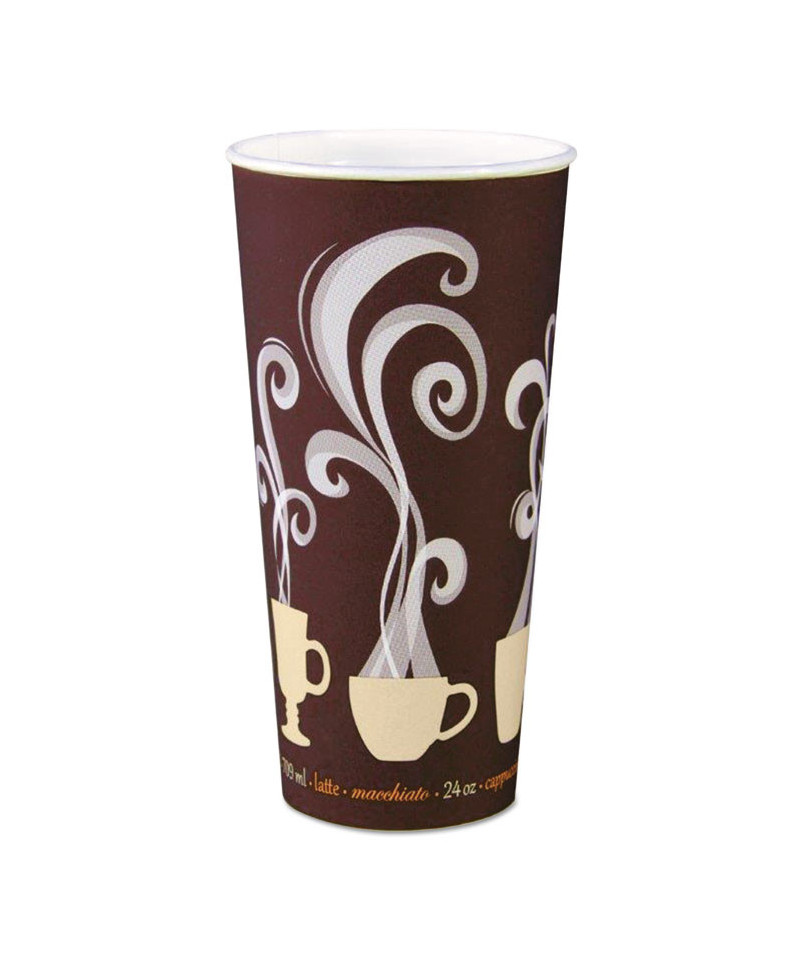 Enjoy your drink without inconvenienceinsulated, double wall paper cups eliminate the need for a cardboard sleeve. Insulating air channels reduce heat transfer, keeping the sidewall cool to the touch. The upscale coffee-themed design is perfect for any cafe or restaurant. Thermotouch insulation maintains beverage temperature. Four cup sizes share one lid (sold separately).