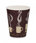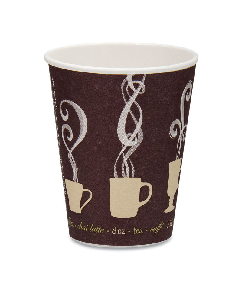 Enjoy your drink without inconvenienceinsulated, double wall paper cups eliminate the need for a cardboard sleeve. Insulating air channels reduce heat transfer, keeping the sidewall cool to the touch. The upscale coffee-themed design is perfect for any cafe or restaurant. Thermotouch insulation maintains beverage temperature. Four cup sizes share one lid (sold separately).