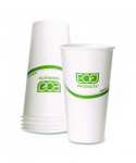 Sip hot coffee or tea in durable PLA-lined paper cups. Great for hot drinks. White cups with green stripe blend into any surroundings without distracting from delicious beverages.