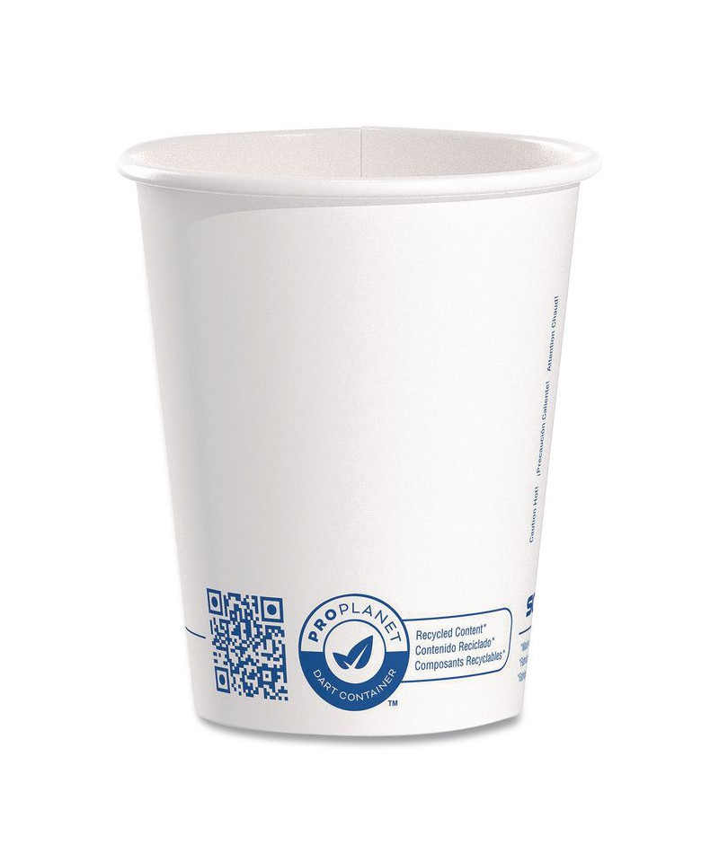 Serve hot drinks the sustainable and secure way. These cups are designed with a moisture barrier that helps prevent leaks. Enjoy or serve coffee, cappuccino, tea or hot chocolate with confidence. Whether you're in the foodservice industry, managing an office or planning an event, SOLO® Recycled Content Paper Hot Cups offer a reliable option you can be proud of. Provide an interactive customer experience and display your sustainability commitment with a scannable QR code printed on the cup. Compatible snap-tight lids are sold separately.