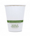 World Centric® compostable white double wall paper hot cups are made from sustainable certified paper with a bio-based lining made from plant sugars. Great for cafes, delis and restaurants serving hot drinks to go. The double wall construction will keep your drink hot and hands protected. Not microwavable. As a certified B Corporation, World Centric® is dedicated to upholding the highest standards of social and environmental responsibility, transparency, and accountability. We proudly give 25% of our profits to grassroots organizations driving global change. Choose World Centric® compostable foodservice products and make a difference today!