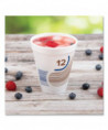 Breeze insulated foam cups by Dart make cashing out customers a breeze! Take control of inventory and make check out easy with barcodes printed directly on each cup. Your customers can comfortably take lattes, sodas and smoothies on-the-go. Serve beverages without the fear of melted milkshakes or not-meant-to-be-cold coffees! Seamless and non-absorbent, beverages won't leak or soak through. The vibrant print offers a pop of color that coordinates with the cups' size, making them quickly identifiable. These dual-use cups save space and time, so they're ideal for convenience stores, gas stations, and grab & go locations. Made with 95% air, therefore requiring minimal plastic to manufacture.