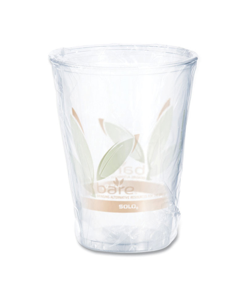 Bare Eco-Forward RPET Cold Cups, Individually Wrapped, ProPlanet Seal, 10 oz, Plastic, Leaf Design, 500/Carton