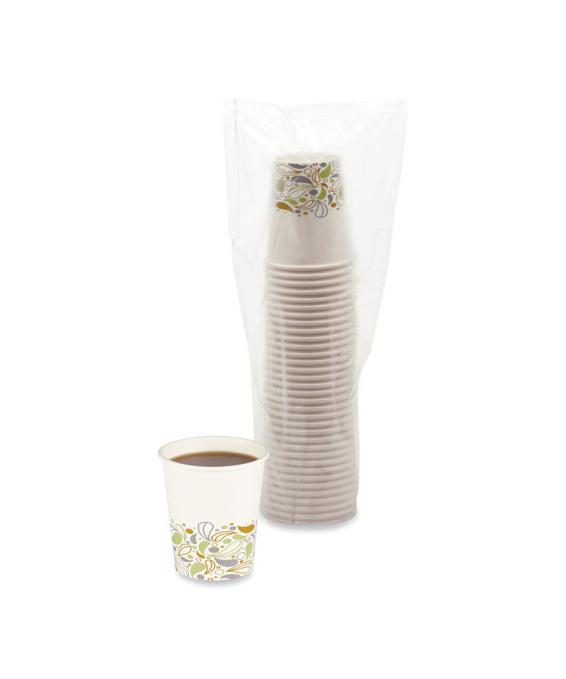 Printed paper hot cups are perfect for serving coffee, tea, and other hot beverages on the go. Poly-lined to help resist heat and prevent leaks. The cup stacks are individually wrapped for easy storage and maximum cleanliness. Convenient size to suit your beverage on-the-go needs. Great for offices, restaurants, cafeterias, schools, catering, retail, and special events. For use with coordinating Boardwalk® Hot Cup Lids, which are sold separately.