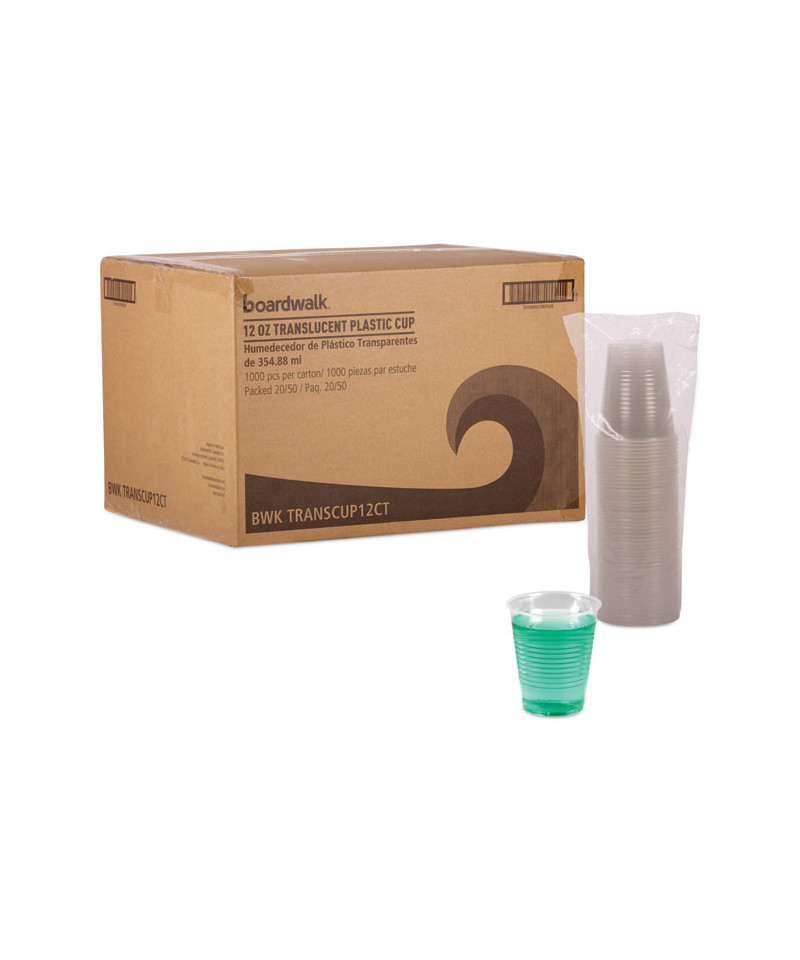 Translucent Plastic Cold Cups, 12 oz, 50/Sleeve, 20 Sleeves/Carton