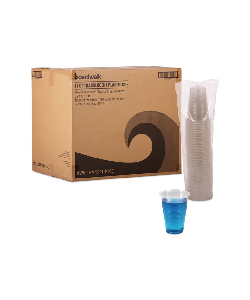 Translucent Plastic Cold Cups, 16 oz, 50/Sleeve, 20 Sleeves/Carton