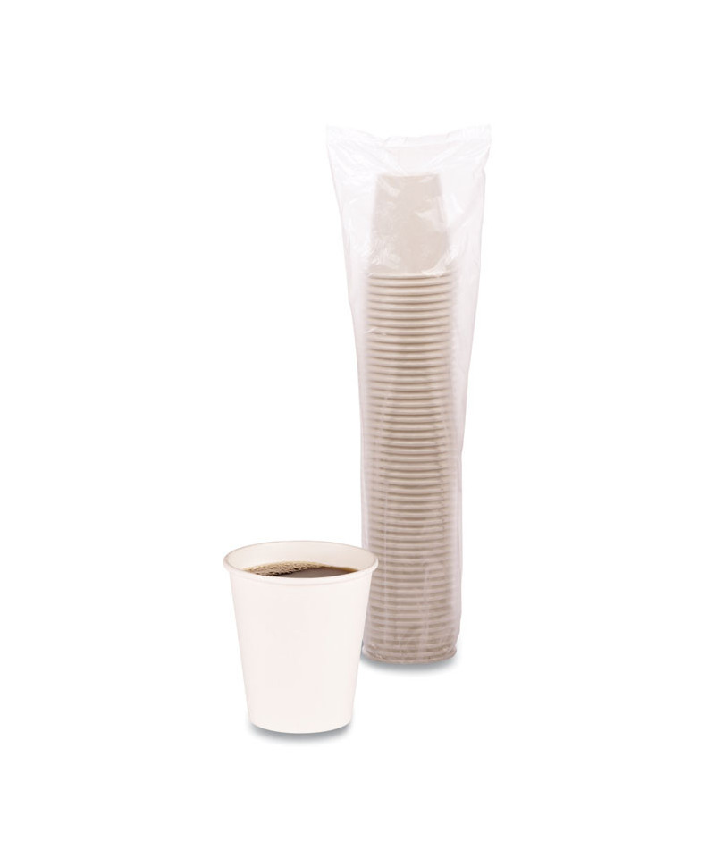 Warm up with a toasty beverage in a convenient, disposable paper cup. These low-cost cups are poly-lined to help resist heat and prevent leaks. Thick rim is great for gripping and sipping. They are perfect for serving coffee, tea, and other hot beverages on the go. Compatible with Boardwalk® Hot Cup Lids for an even more secure and portable beverage.