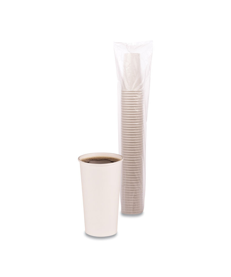 Paper Hot Cups, 20 oz, White, 50/Sleeve, 12 Sleeves/Carton