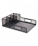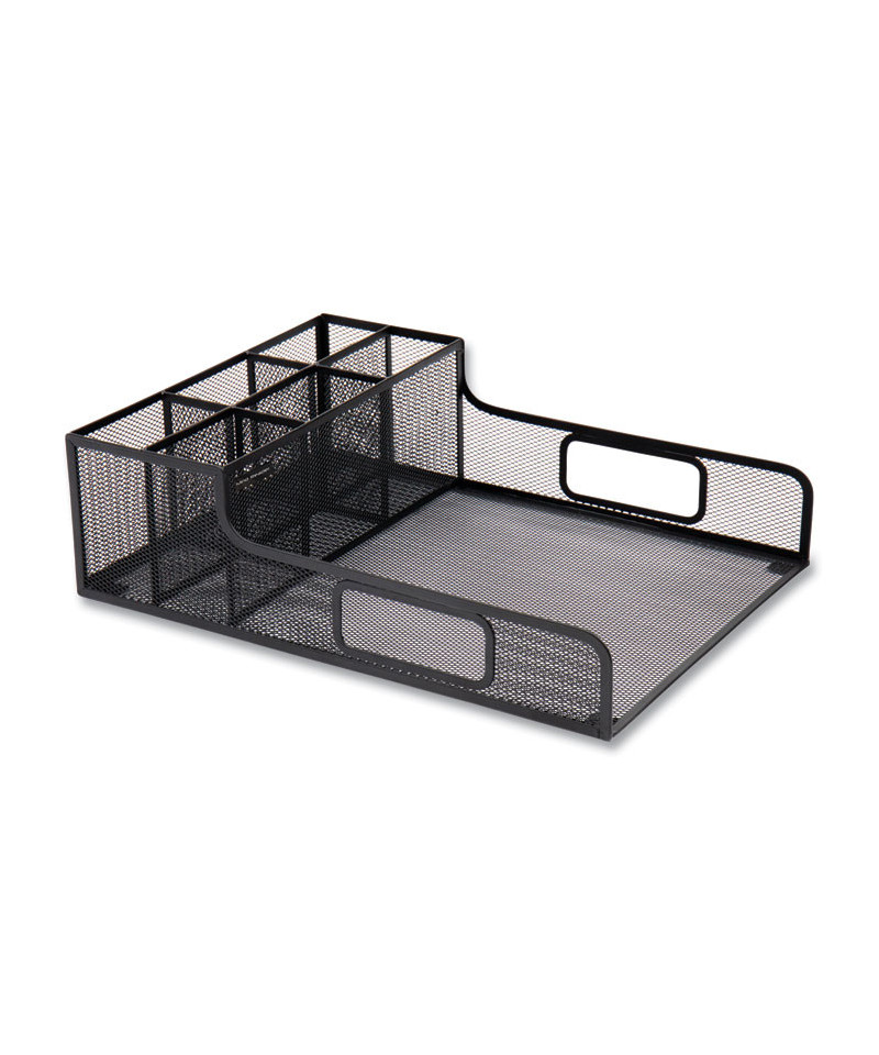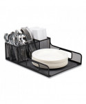 From office breakrooms to holiday parties, use this portable countertop organizer and serving tray to streamline your buffet line, in your office breakroom to store coffee supplies or other condiments, or in your bedroom as a cosmetics and toiletries organizer. Lightweight and portable, it's easy to place it wherever it's needed. Seven different compartments allow for the organization of many types of utensils (or pens, pencils, and highlighters, etc.), giving you plenty of options to place items easily with ample room for storage. Place napkins in one compartment, knives, forks, spoons, and other accessories in the others, and use the large compartment in the front to store plates (or papers, if you're using this tray in the office). Its durable construction is ideal for parties or daily use and it can be used indoors or outdoors. Its surface is also easy to clean after every event with mild dish soap and water, so it's ready for your next get-together.