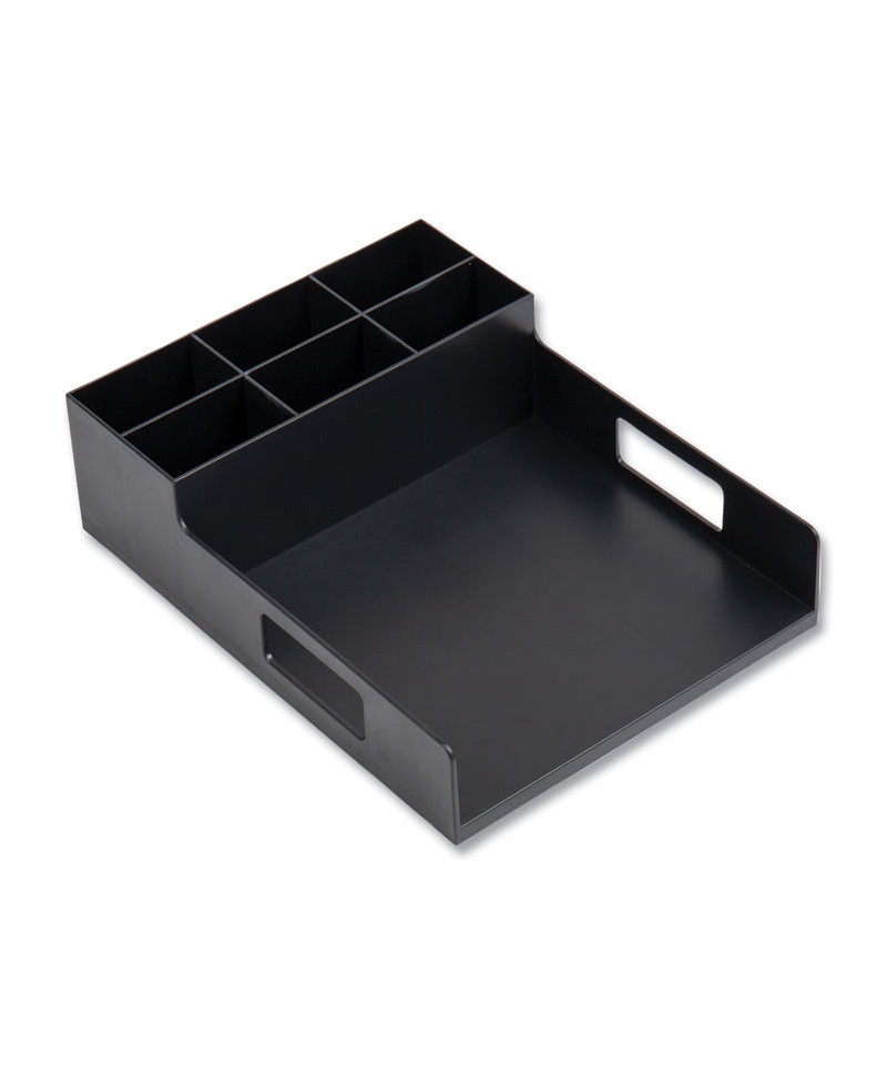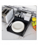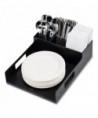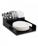 Network Collection Utensil, Napkin and Plate Countertop Organizer, 15.2 x 11.5 x 4.45, Plastic, Black
