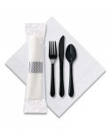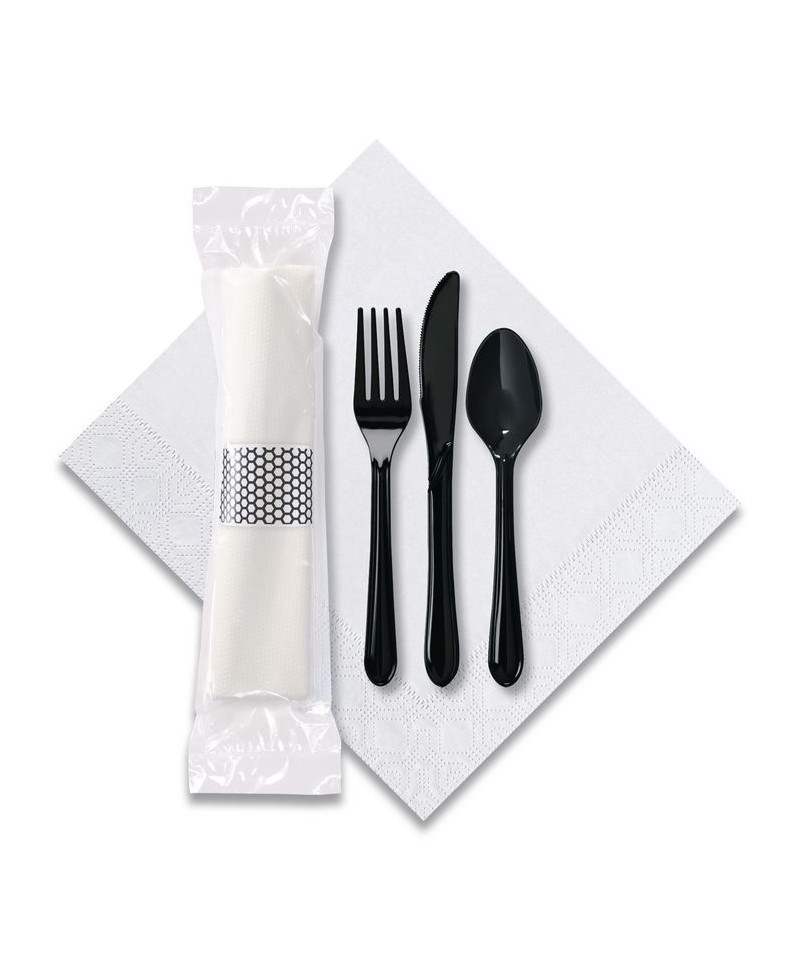 Offer a safe and sanitary solution to your food delivery and take out food service. This cutlery kit is an excellent alternative to bulk cutlery bins and napkin dispensers—no cross-contamination! It's convenient, sanitary and perfect for take out, boxed meal buffets, meal service and more. Includes heavyweight knife, fork, spoon and a 2-ply napkin measuring 7.5" x 4.25" folded and 15" x 17" unfolded. Demonstrate your operation's commitment to health and safety!