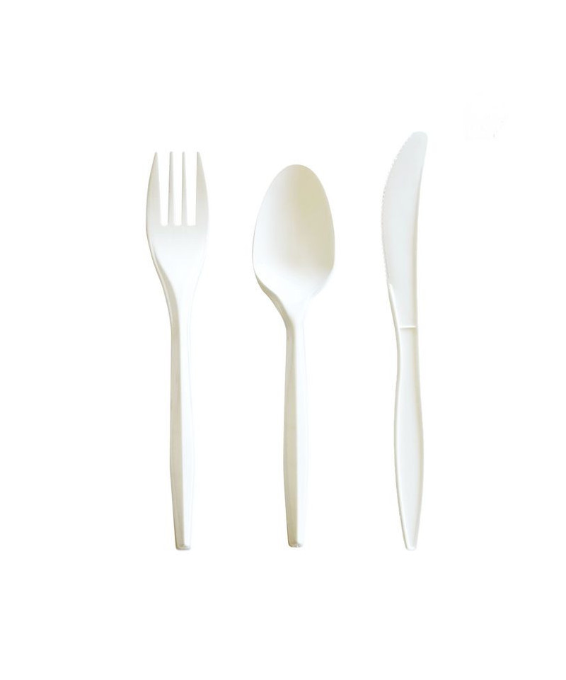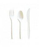 Three-Piece Cutlery Kit, Mediumweight, Fork/Knife/Spoon, 6.97", Plastic, White, 250/Carton