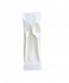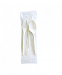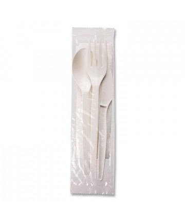 Serve virtually any meal with this cutlery kit. Each pre-packaged, cutlery wrapped kit contains a medium weight plastic fork, spoon, and knife. The convenient kits make set-up for an event or packing a to-go meal quick and easy. Individually packaged for convenience and to ensure utensils remain sanitary, even after handling. Perfect for outdoor gatherings, large parties, and take-out meals.
