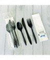 Six-Piece Cutlery Kit, Mediumweight, Fork/Knife/Napkin/Pepper/Salt/Spoon, 5.86", Plastic, Black, 250/Carton