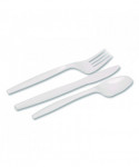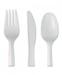 Mediumweight Polypropylene Cutlery, Fork/Knife/Teaspoon, Plastic, White, 250/Carton