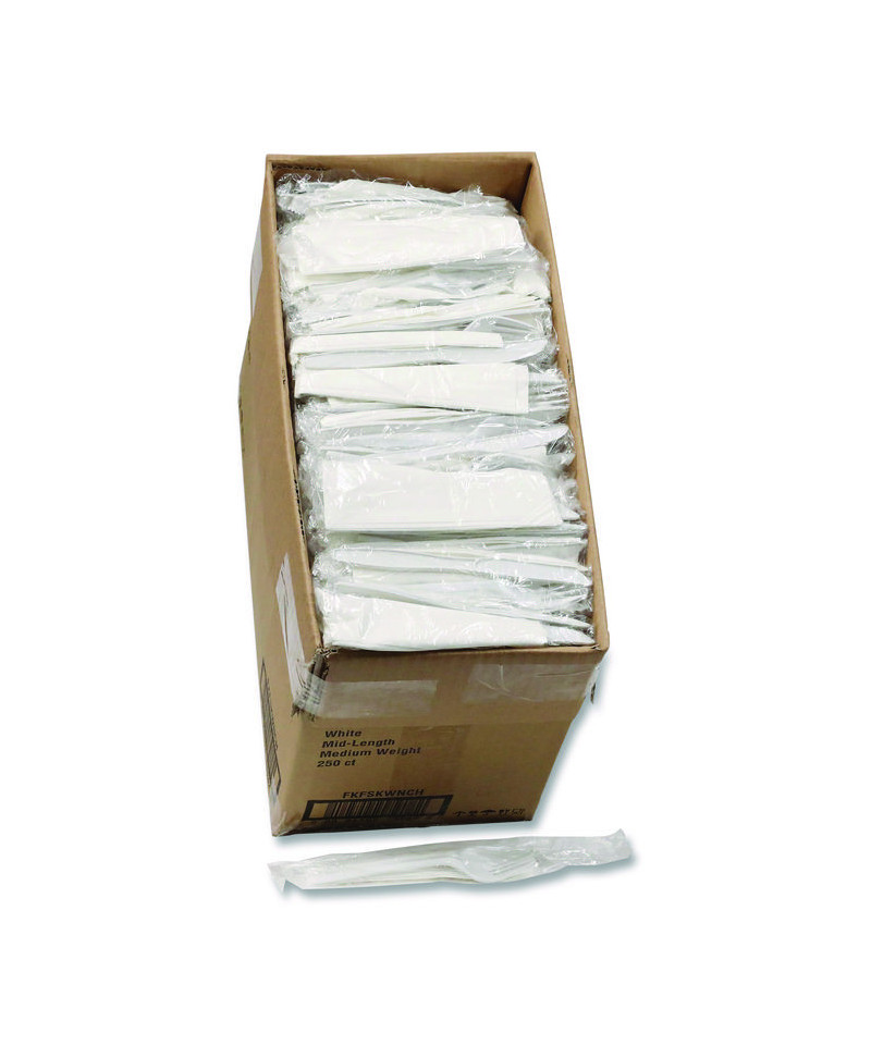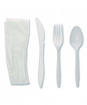 Serve virtually any meal with this cutlery kit. Each pre-packaged, cutlery wrapped kit contains a medium weight plastic fork, spoon, and knife. The...