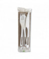 TPLA Wrapped Cutlery, Ribbed, Fork/Knife/Napkin/Spoon, Plastic, Light Beige, 250/Carton