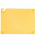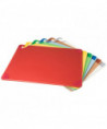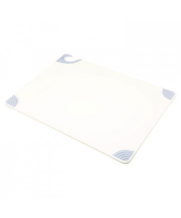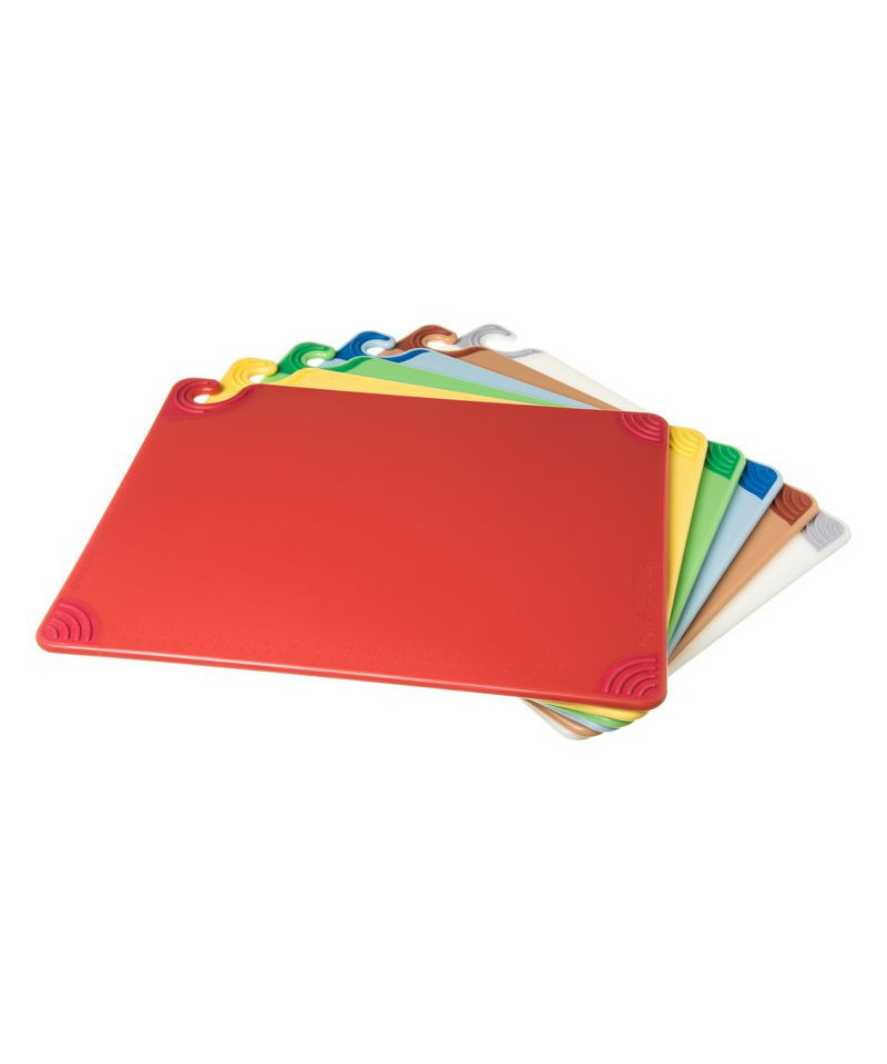 Saf-T-Grip Cutting Board has anti-slip corners that the stabilize cutting board to prevent injury while cutting and chopping. Food safety hook offers secure handling without touching prepped ingredients. Molded-in ruler helps create uniform cuts of vegetables and fruit. HACCP color-coding in assorted colors minimize cross-contamination by dedicating each color to meat, poultry, vegetables and more. Warp-resistant, withstands high temperatures of commercial dishwashers. Co-polymer blend is formulated to decrease knife dulling.