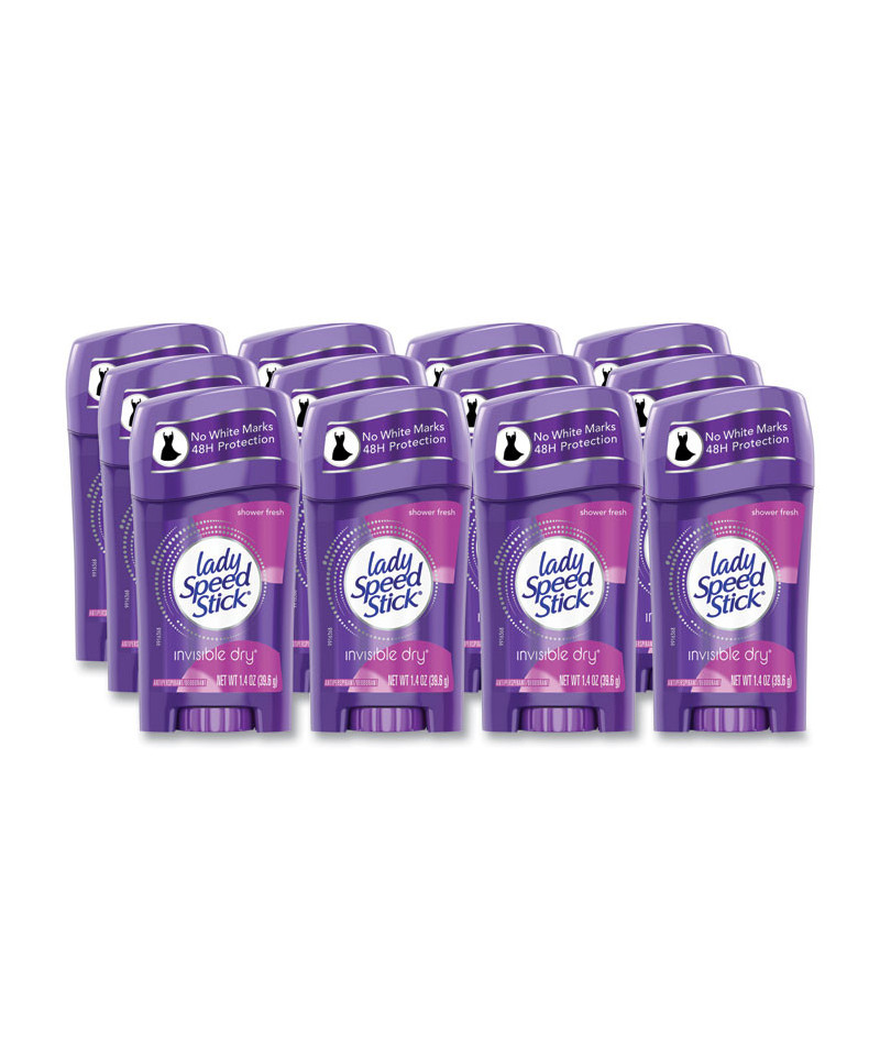 Stay comfortable and dry all day long with Lady Speed Stick Invisible Dry Antiperspirant Deodorant stick. Features a scent renewal formula to give you a confident, fresh scent throughout the day. Reduces underarm perspiration, leaves no residue and offers 24-hour protection. Goes on clear for added security, this deodorant antiperspirant allows you to wear that little black dress with confidence.