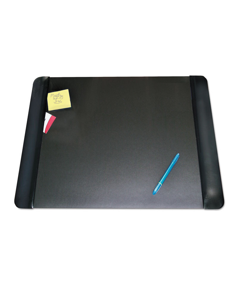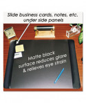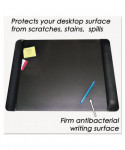 Protect your desk from scratches, stains and spills. Ergonomic desk pad enables smoother writing, while the handsome leather-like side panels provide space for cards, notes and memos. The center panel resists stains and cleans easily with water. Built-in antimicrobial agent protects the product from the growth of germs. Writing surface made from recyclable material.