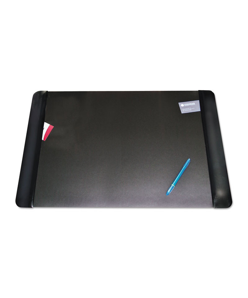 Executive Desk Pad with Antimicrobial Protection, Leather-Like Side Panels, 36" x 20", Black