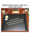 Ergonomic desk pad enables smoother writing, while the handsome leather-like side panels provide space for cards, notes and memos. Built-in antimicrobial agent protects the product from the growth of germs. Writing surface made from recyclable material.