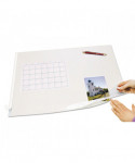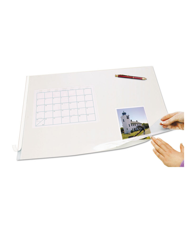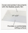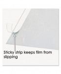 Hinged Top Protector—Adhesive strip at top acts as a hinge to prevent shifting while allowing access to papers underneath. Static cling keeps document in place.