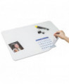 Hinged Protector-Adhesive strip at top acts as a hinge to prevent shifting while allowing access to papers underneath. Static cling keeps document in place.