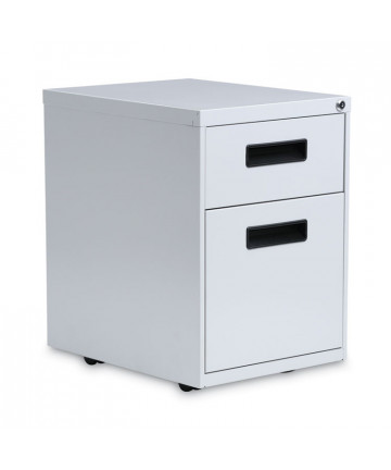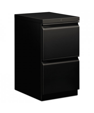 Mobile Pedestal Files at 20 deep with a two-drawer box-file drawer configuration and included seat cushion are designed to support the demand of today's office. Durable, fully assembled steel construction with non-porous surface is easy to clean. These commercial grade mobile pedestals come standard with factory installed hidden casters, full extension drawers, counterweights, drawer divider, pencil tray and a core-removable lock for security. The file drawer accommodates letter-size hanging files. The ball-bearing suspension ensures a smooth and quiet drawer performance. Extended fronts with satin nickel arch pull handles provide a sleek and contemporary design. The 21.75 height allows these units to roll under most work surfaces.