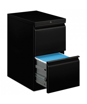 Mobile pedestal files at 20 deep with a two-drawer box-file drawer configuration and included seat cushion are designed to support the demand of today's office. Durable, fully assembled steel construction with non-porous surface is easy to clean. These commercial grade mobile pedestals come standard with factory installed hidden casters, full extension drawers, counterweights, drawer divider, pencil tray and a core-removable lock for security. The file drawer accommodates letter-size hanging files. The ball-bearing suspension ensures a smooth and quiet drawer performance. Extended fronts with satin nickel arch pull handles provide a sleek and contemporary design. The 21.75 height allows these units to roll under most work surfaces.