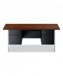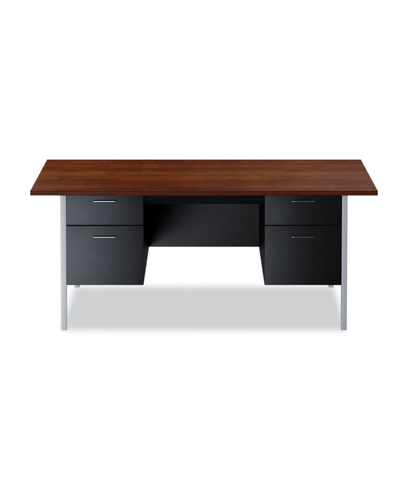 Double Pedestal Steel Desk, 72" x 36" x 29.5", Mocha/Black, Chrome-Plated Legs