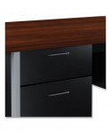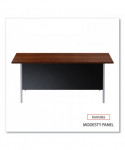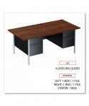 Solid and stable desk with square edge, laminated top that is scratch- and stain-resistant. Built with a durable, powder-coated steel frame with 1" square, tubular steel legs. Includes a full extension, locking file drawer with telescoping ball bearing slides to accommodate hanging file folders. Box drawer operates on steel roller suspensions. Center drawer lock secures all drawers. Aluminum drawer handles. Three-quarter height modesty panel provides privacy. Leveling glides adjust for uneven floors.